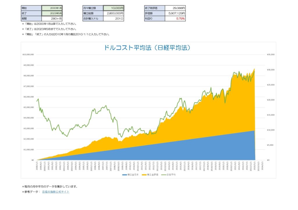 >>ドルコスト平均法(日経平均)をダウンロード